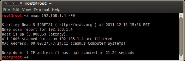 Enter SimSim, which can be downloaded at http://leetsys.com/programs/simsim/v1.0/.  SimSim monitors network traffic using libpcap.  If it sees the configured ‘password’ come in on any UDP packet it will execute a defined script.  In our case the defined script modifies iptables to allow any TCP connection from the IP Address of the packet that contained the password.  However it can really execute any command we want as it’s just a simple call to system().
